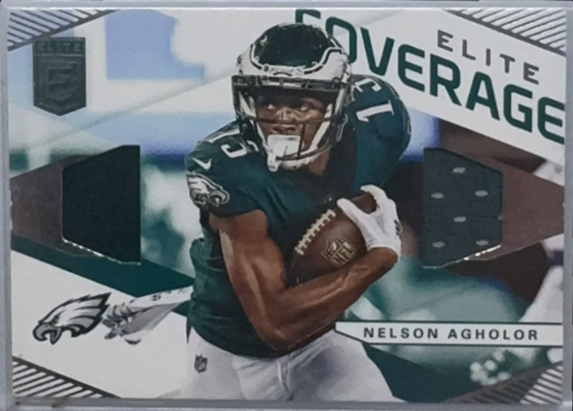 The Nelson Agholor 2019 Elite #EC-14 Elite Coverage card is 1 of 2 Nelson Agholor's card variations in the 2019 Elite set being tracked by Sports Card Investor, including Elite Coverage - Prime /49.