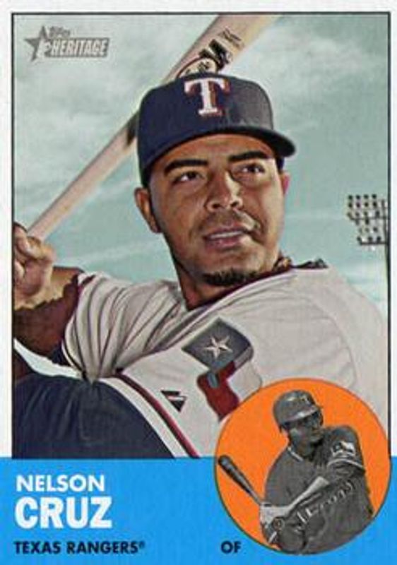 The Nelson Cruz 2012 Topps Heritage #468a Base card is 1 of 7 Nelson Cruz's card variations in the 2012 Topps Heritage set being tracked by Sports Card Investor, including #468b Base, #468c Base, #468 Walmart Blue Border, #CCR-NC Clubhouse Collection Relics, and #2 Stick Ons.