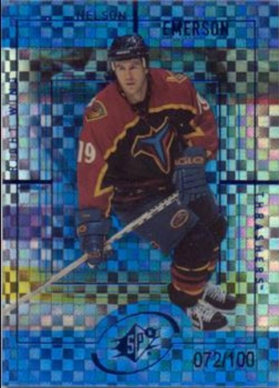 The Nelson Emerson 1999 SPx #2 Radiance /100 card is 1 of 3 Nelson Emerson's card variations in the 1999 SPx set being tracked by Sports Card Investor, including Base /1999, and Spectrum /1.
