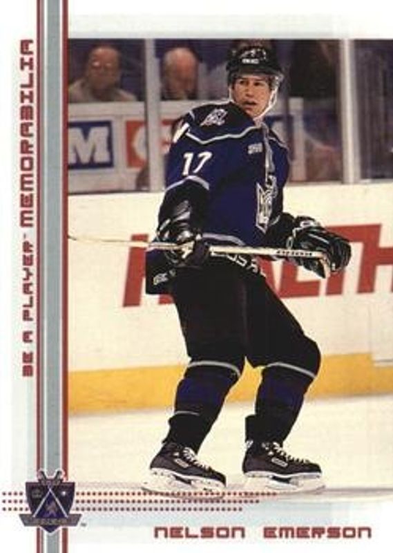 The Nelson Emerson 2000 In The Game Be a Player Memorabilia #337 Ruby /200 card is 1 of 22 Nelson Emerson's card variations in the 2000 In The Game Be a Player Memorabilia set being tracked by Sports Card Investor, including Base, Promos, Sapphire /100, Chicago Sportsfest Blue /10, and Chicago Sportsfest Copper /10.