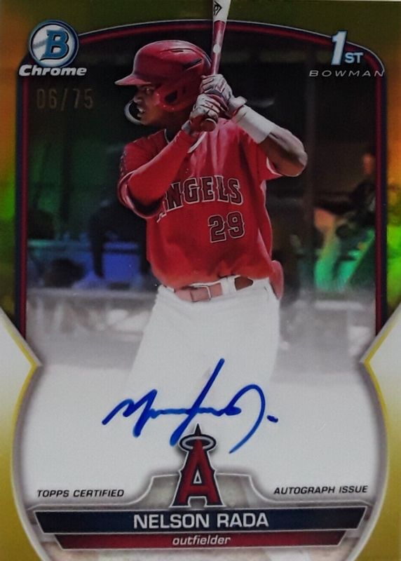NELSON RADA - 2023 Bowman 1st Chrome AUTO Yellow Refractor #/75 L.A. ANGELS