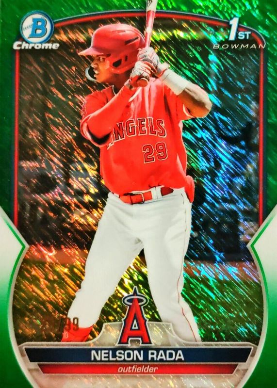 The Nelson Rada 2023 Bowman #BCP-132 Chrome Prospects - Green Shimmer Refractor /99 (1st) card in Raw condition has not changed in price in the last 30 days and was last sold for $29.99 .