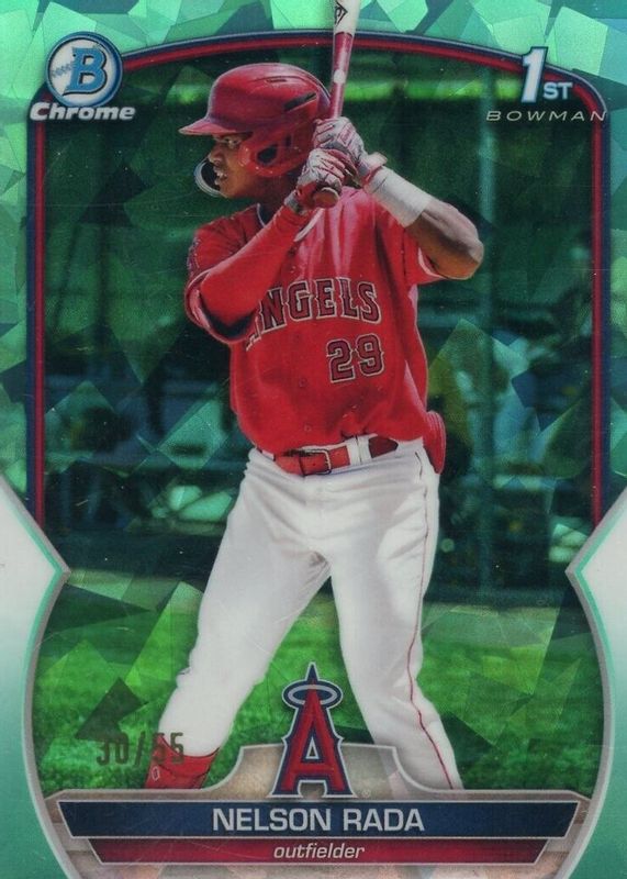 The Nelson Rada 2023 Bowman Sapphire Edition #BCP-132 Chrome Prospects - Aqua /55 (1st) card in Raw condition has not changed in price in the last 30 days and was last sold for $35.04 .