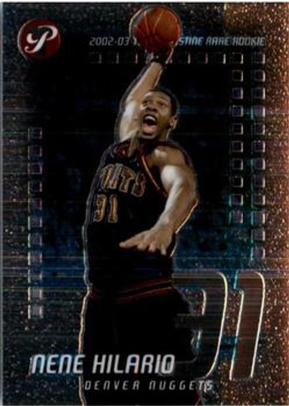 The Nene Hilario 2002 Topps Pristine #71 Base Rookie card is 1 of 9 Nene Hilario's card variations in the 2002 Topps Pristine set being tracked by Sports Card Investor, including #69 Base, #70 Base, #71 Gold Refractor /99, #69 Gold Refractor /99, and #70 Gold Refractor /99.