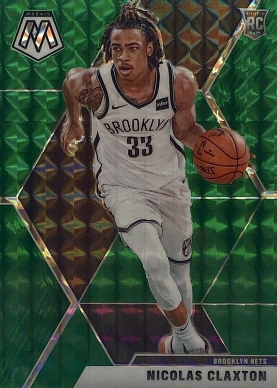 NICOLAS CLAXTON 2019-20 PANINI MOSAIC GREEN REACTIVE #236 ROOKIE BROOKLYN NETS