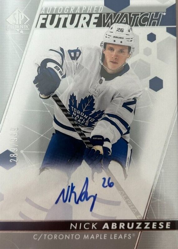 Nick Abruzzese 2022-23 SP Authentic Future Watch Auto /999 Toronto Maple Leafs