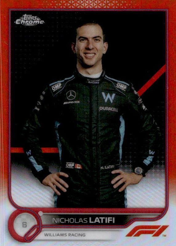 The Nicholas Latifi 2022 Topps Chrome Formula 1 #51 Orange & Red Refractor card in Raw condition has not changed in price in the last 30 days and was last sold for $1.91 .