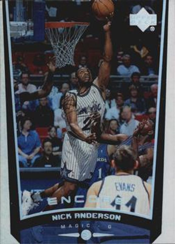 The Nick Anderson 1998 Upper Deck Encore #60 Base card is 1 of 2 Nick Anderson's card variations in the 1998 Upper Deck Encore set being tracked by Sports Card Investor, including F/X /125.