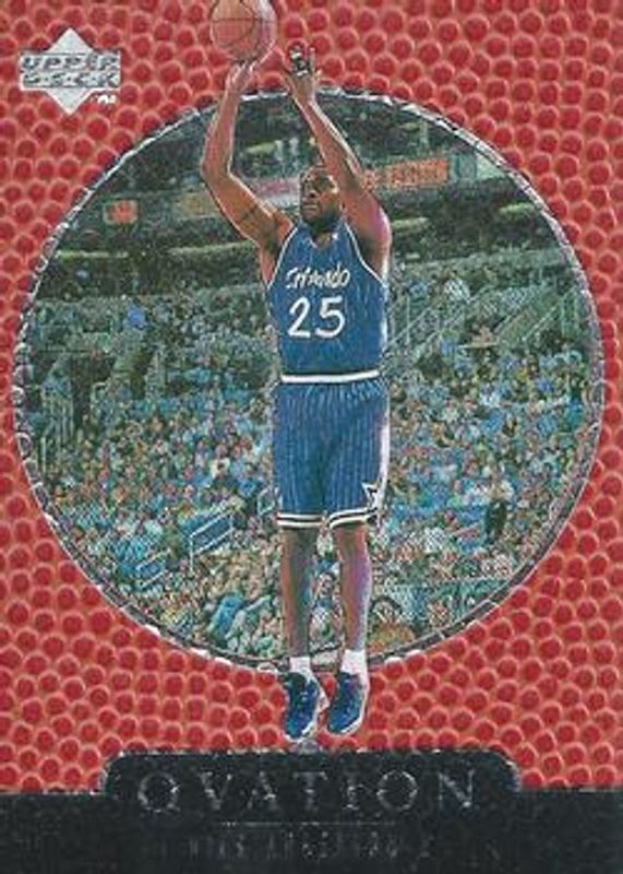 The Nick Anderson 1998 Upper Deck Ovation #48 Base card is 1 of 2 Nick Anderson's card variations in the 1998 Upper Deck Ovation set being tracked by Sports Card Investor, including Gold /1000.