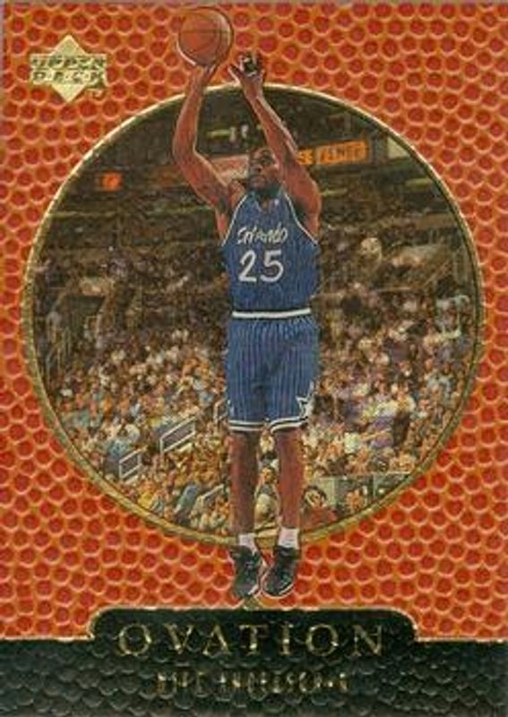 The Nick Anderson 1998 Upper Deck Ovation #48 Gold /1000 card is 1 of 2 Nick Anderson's card variations in the 1998 Upper Deck Ovation set being tracked by Sports Card Investor, including Base.