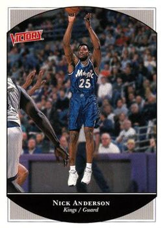 The Nick Anderson 1999 Upper Deck Victory #181 Base card is 1 of 2 Nick Anderson's card variations in the 1999 Upper Deck Victory set being tracked by Sports Card Investor, including Base.