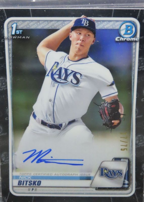 Best Prices Available For Sale of Nick Bitsko 2020 Bowman Draft #CDA-NB Chrome DP Auto - Black Refractor /75 (1st)