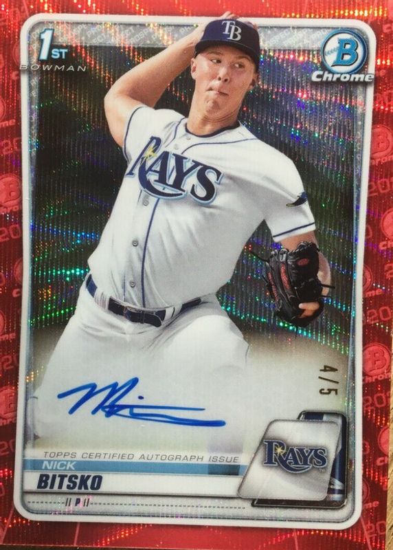 Best Prices Available For Sale of Nick Bitsko 2020 Bowman Draft #CDA-NB Chrome DP Auto - Red Wave Refractor /5 (1st)