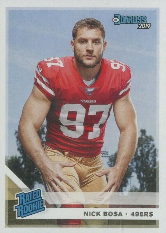 The Nick Bosa 2019 Donruss #318 Base Rookie card in Raw condition has moved down -$1.50 (-37.6%) in the last 30 days and was last sold for $2.49 .