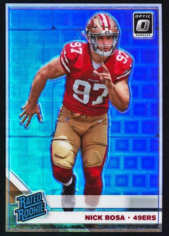 This card is 1 of 33 Nick Bosa's card variations in the 2019 Optic set being tracked by Sports Card Investor, including Base, Bronze, Green Velocity, Holo, and Pink.