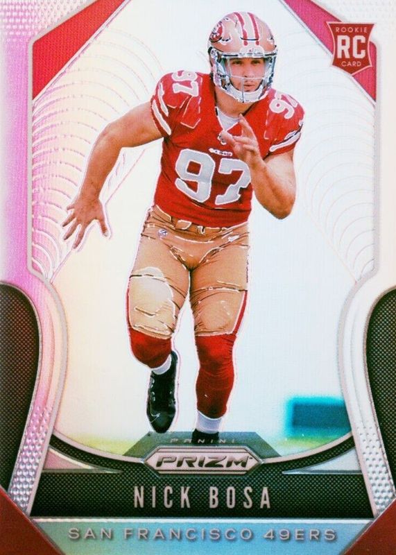 The Nick Bosa 2019 Prizm #311 Silver Rookie card in Raw condition has moved down -$6.99 (-41.1%) in the last 30 days and was last sold for $10.00 .