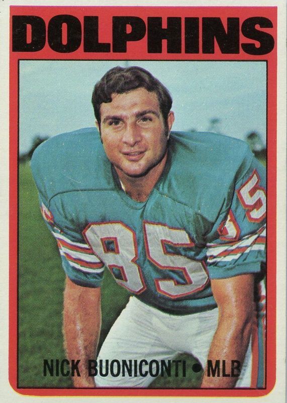 Nick Buoniconti's Football cards are available in at least 15 sets. Nick Buoniconti's biggest 7-day price movers are 1972 Topps #43 Base, 1963 Fleer #10 Base, and 1967 Topps #13 Base.