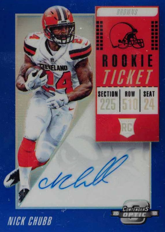 Nick Chubb 2018 Contenders Optic #113 Rookie Ticket Auto - Blue (/25) RAW Price Guide