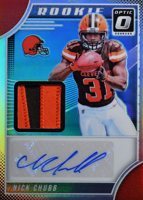 Nick Chubb 2018 Optic #RPV-NC Rookie Patch Auto Photo Variation (/15) RAW Price Guide