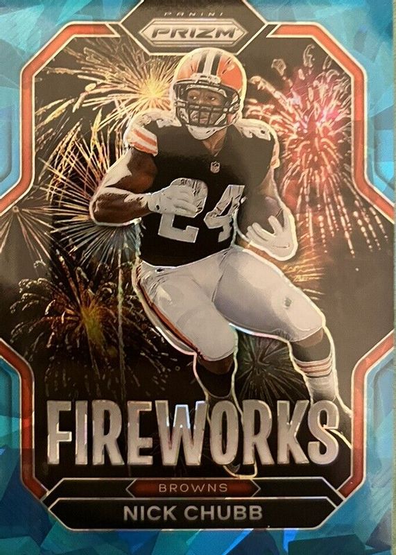 2022 Panini Prizm NICK CHUBB /99 Fireworks Blue Cracked Ice #F-12 Browns