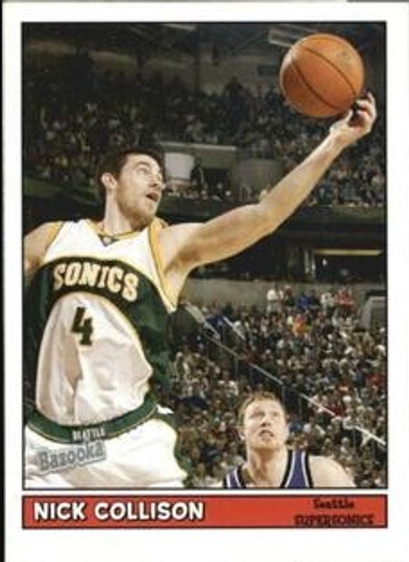 The Nick Collison 2005 Bazooka #158 Minis card is 1 of 6 Nick Collison's card variations in the 2005 Bazooka set being tracked by Sports Card Investor, including Base, Gold, Blue /5, Blog Squad Relics, and Tattoos.