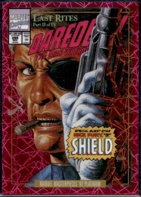Nick Fury 2024 Upper Deck Marvel Masterpieces '92 Platinum #64-V Variant Cover - Pink Laser /692 RAW Price Guide