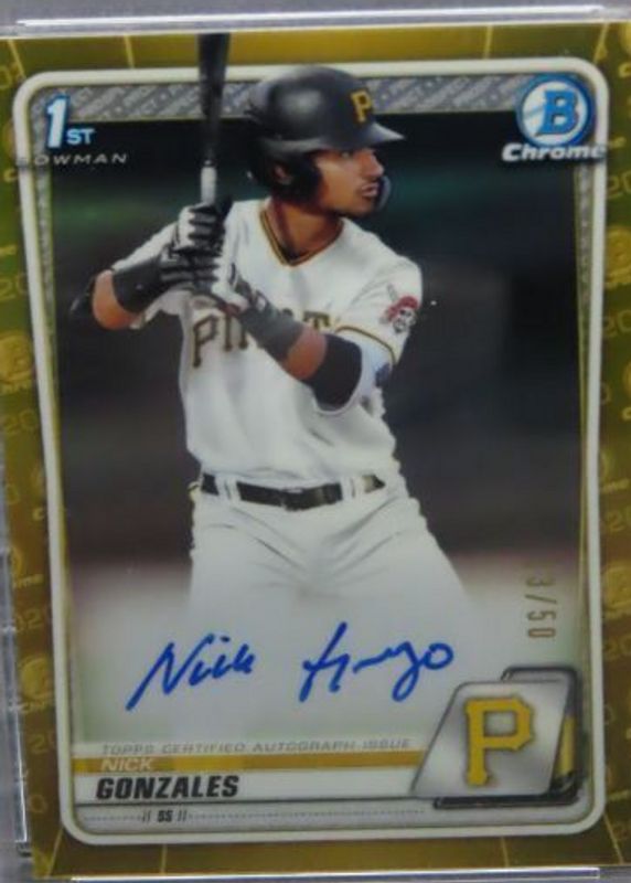 Best Prices Available For Sale of Nick Gonzales 2020 Bowman Draft #CDA-NGO Chrome DP Auto - Gold Refractor /50 (1st)