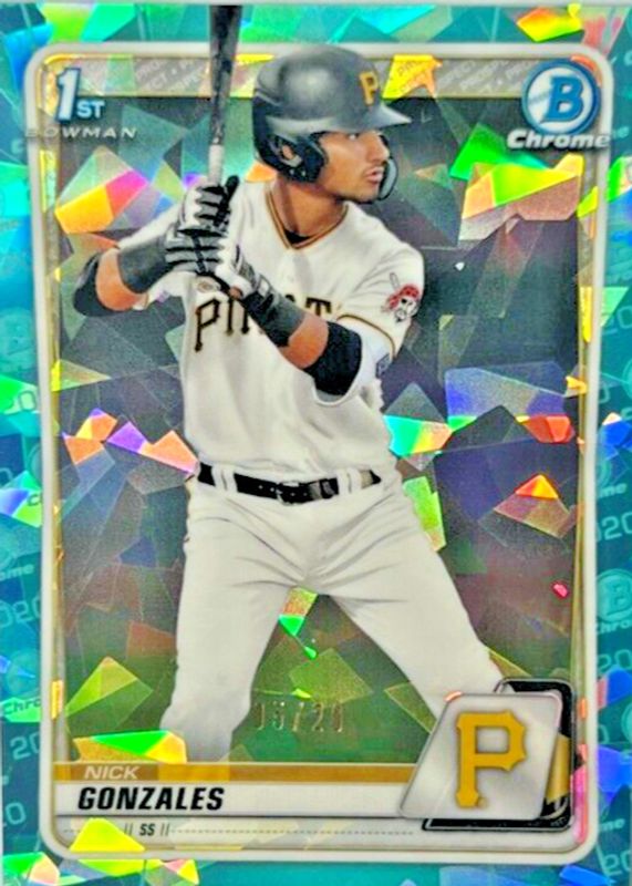 This card is 1 of 9 Nick Gonzales' card variations in the 2020 Bowman Draft Sapphire Edition set being tracked by Sports Card Investor, including Chrome (1st), Chrome - Yellow /99 (1st), Chrome - Green /50 (1st), Chrome - Orange /25 (1st), and Chrome - Gold /15 (1st).
