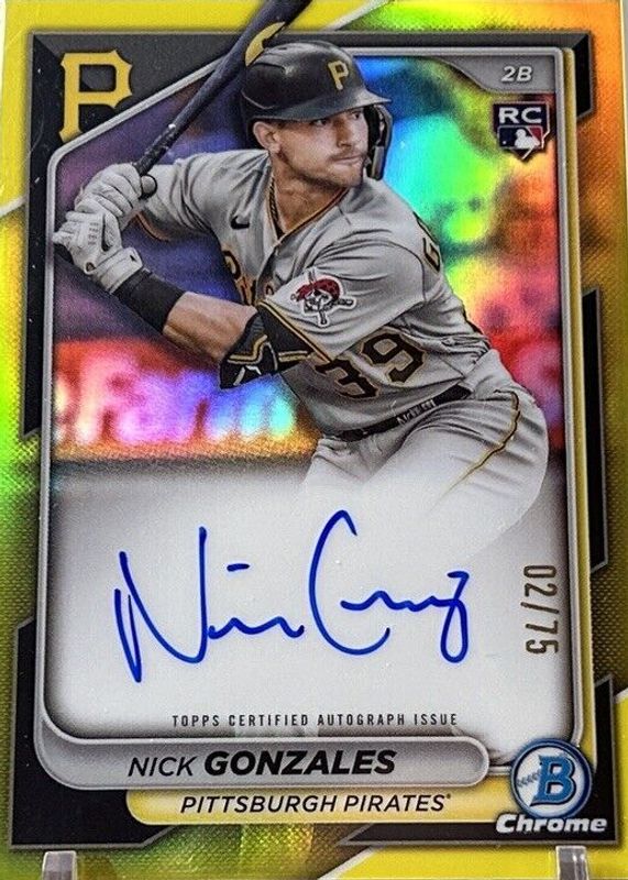 2024 Bowman Chrome Nick Gonzales Yellow Refractor Auto /75 RC #CRA-NG Pirates