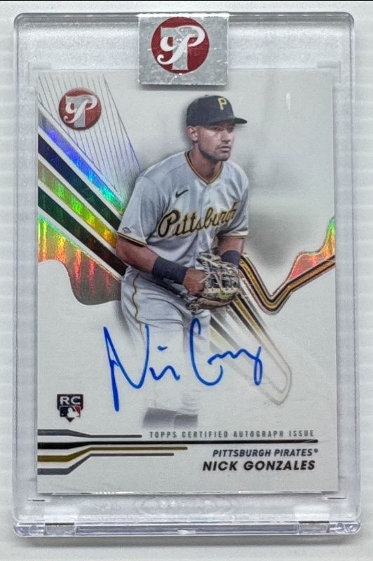 The Nick Gonzales 2024 Topps Pristine #PA-NGO Pristine Autographs Rookie card is 1 of 29 Nick Gonzales' card variations in the 2024 Topps Pristine set being tracked by Sports Card Investor, including Base, Pristine Refractor, Refractor, Green Refractor /150, and Pristine Purple Refractor /99.