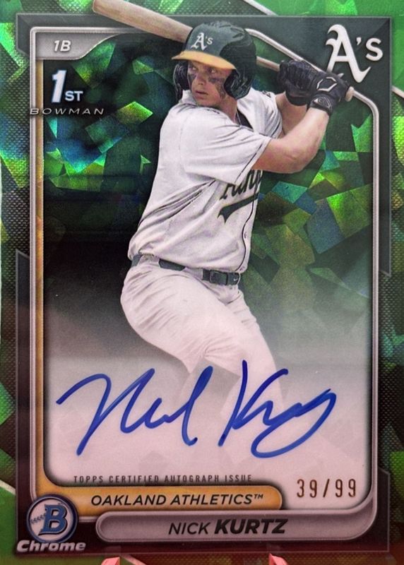 2024 Bowman Sapphire Nick Kurtz Green Auto /99 First 1st Athletics ROY COA-NK