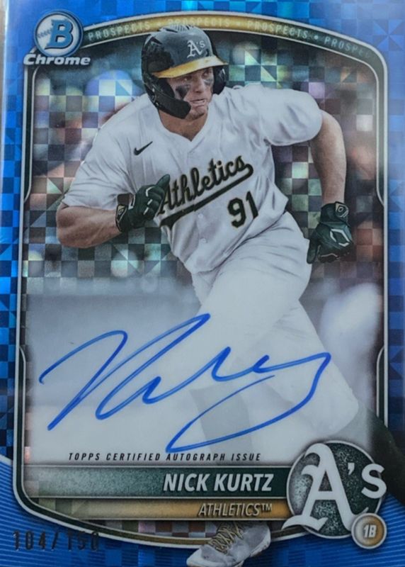 NICK KURTZ 2025 BOWMAN CHROME AUTOGRAPH BLUE X-FRACTOR AUTO /150 CPA-NK