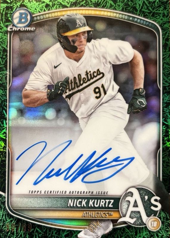 2025 Bowman Chrome Nick Kurtz On Card Auto Green Grass /99 CPA-NK Athletics