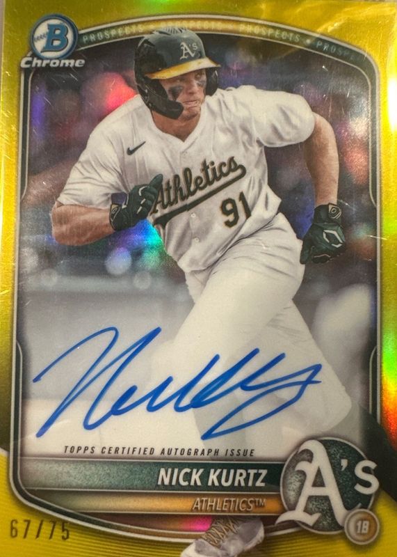 Nick Kurtz 2025 Bowman Chrome Autograph Yellow CPA-NK /75 Oakland Athletics ROY