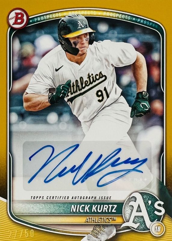 NICK KURTZ 2025 BOWMAN #BPA-NK PROSPECT GOLD BORDER AUTO 43/50 ATHLETICS