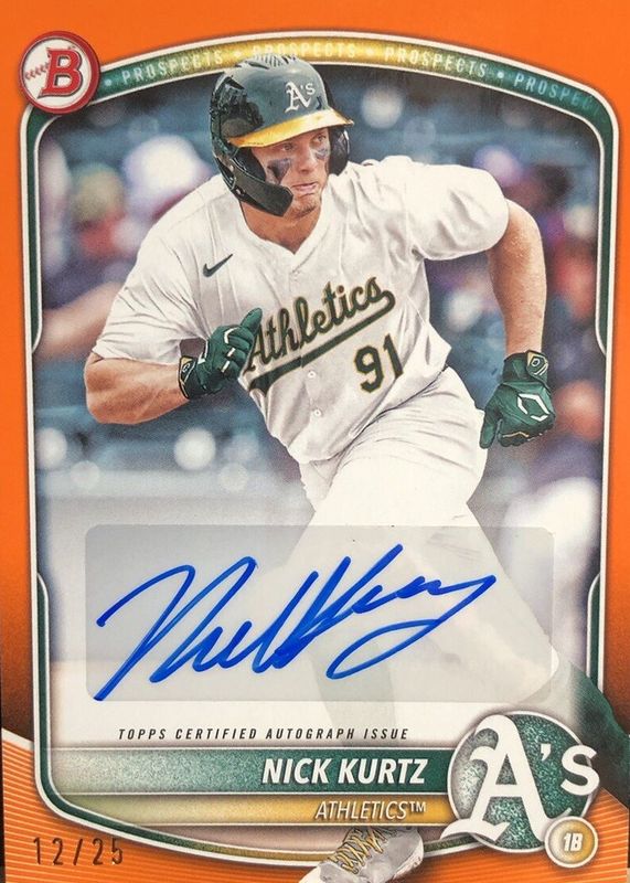 2025 Bowman Prospects Autograph Nick Kurtz BPA-NK ORANGE /25 SSP Oakland A's