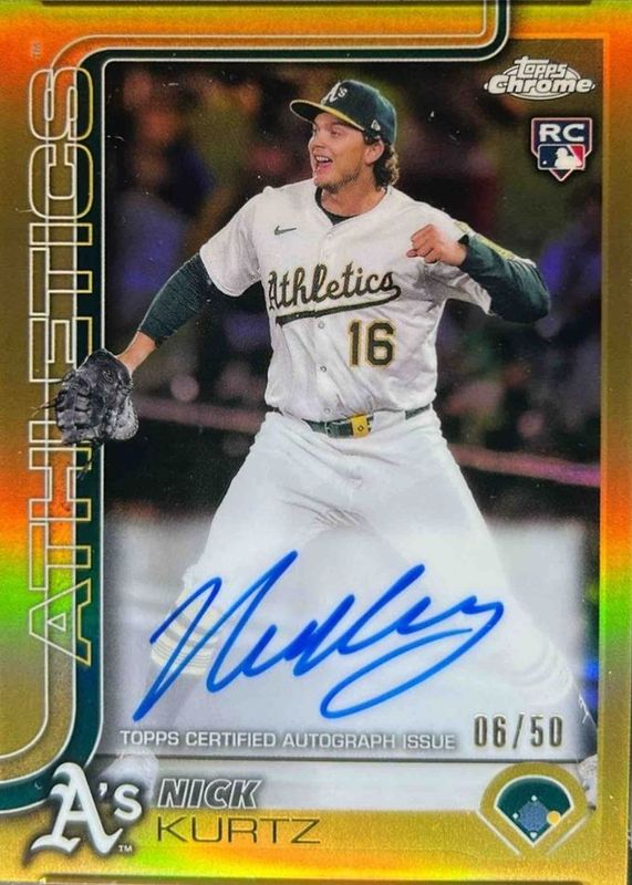 2025 Topps Chrome Nick Kurtz Gold Refractor /50 Auto RC Rookie A's Q1887