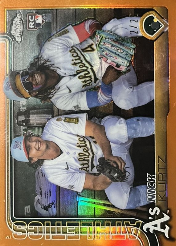 The Nick Kurtz 2025 Topps Chrome Update #USC178 Image Variation - Orange Refractor /25 Rookie card in Raw condition has not changed in price in the last 30 days and was last sold for $230.17 .