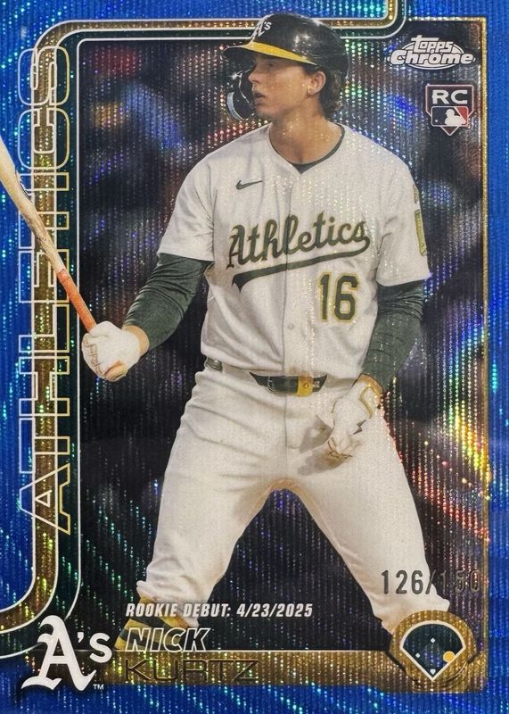 2025 Topps Chrome Update Nick Kurtz #USC180 Blue Wave RC /150 Athletics