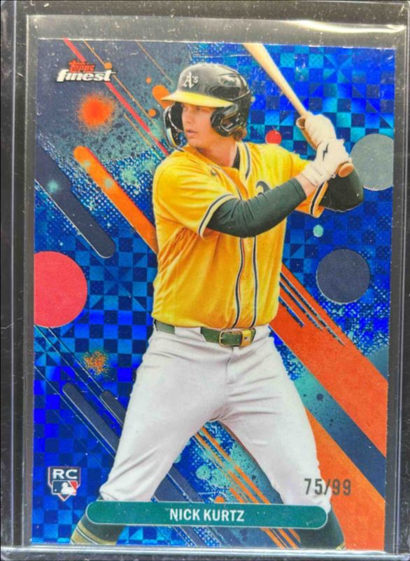 The Nick Kurtz 2025 Topps Finest #10 Base Common - Blue X-Fractor /99 Rookie card is 1 of 79 Nick Kurtz's card variations in the 2025 Topps Finest set being tracked by Sports Card Investor, including Common, Rare, Common - Checkerboard Refractor, Common - Refractor, and Rare - Checkerboard Refractor.