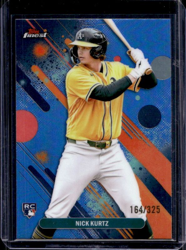 The Nick Kurtz 2025 Topps Finest #10 Base Common - Sky Blue Refractor /325 Rookie card is 1 of 79 Nick Kurtz's card variations in the 2025 Topps Finest set being tracked by Sports Card Investor, including Common, Rare, Common - Checkerboard Refractor, Common - Refractor, and Rare - Checkerboard Refractor.