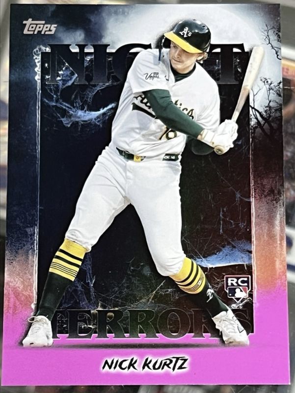 The Nick Kurtz 2025 Topps Update #NT-5 Night Terrors - Pink Foil Rookie card is 1 of 203 Nick Kurtz's card variations in the 2025 Topps Update set being tracked by Sports Card Investor, including Base, Rookie Debut, Aqua Holo Foil, Aqua Rainbow Foil, and Diamante Foil.