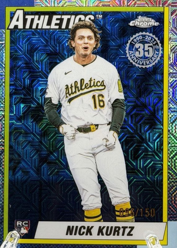 This card is 1 of 18 Nick Kurtz's card variations in the 2025 Topps Update Silver Pack set being tracked by Sports Card Investor, including 1990 Chrome, 1990 Chrome Autographs /299, 1990 Chrome Autographs - Purple Refractor /250, 1990 Chrome - Purple Refractor /250, and 1990 Chrome Autographs - Blue Refractor /150.