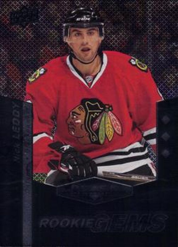 The Nick Leddy 2010 Upper Deck Black Diamond #179 Base Rookie card is 1 of 5 Nick Leddy's card variations in the 2010 Upper Deck Black Diamond set being tracked by Sports Card Investor, including Ruby /100, Gold /10, Platinum /1, and 2010 Upper Deck Ice /1999.