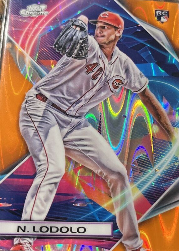 Best Prices Available For Sale of Nick Lodolo 2022 Topps Chrome Cosmic #51 Orange Galactic Refractor /25