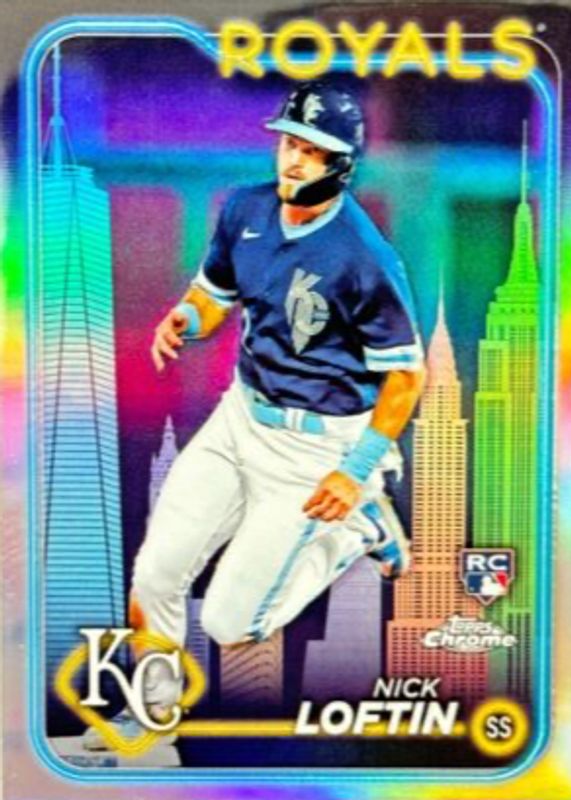 Nick Loftin's Baseball cards are available in at least 20 sets. Nick Loftin's biggest 7-day price movers are 2024 Topps Chrome #RA-NL Rookie Autographs, 2024 Topps Chrome #183 Big Apple Refractor /(SSP), and 2024 Topps Chrome #183 Blue Refractor /150.