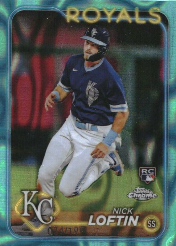 2024 Topps Chrome Nick Loftin Aqua Raywave /199 #183 RC Rookie Royals