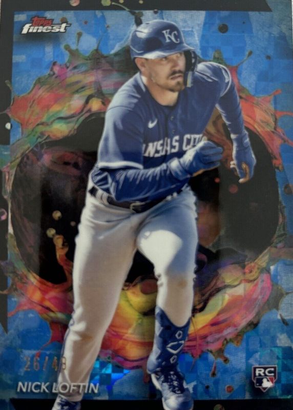 This card is 1 of 15 Nick Loftin's card variations in the 2024 Topps Finest set being tracked by Sports Card Investor, including Rare, Rare - Checkerboard Refractor, Rare - Refractor, Rare - Sky Blue Refractor /150, and Rare - Purple Refractor /125.
