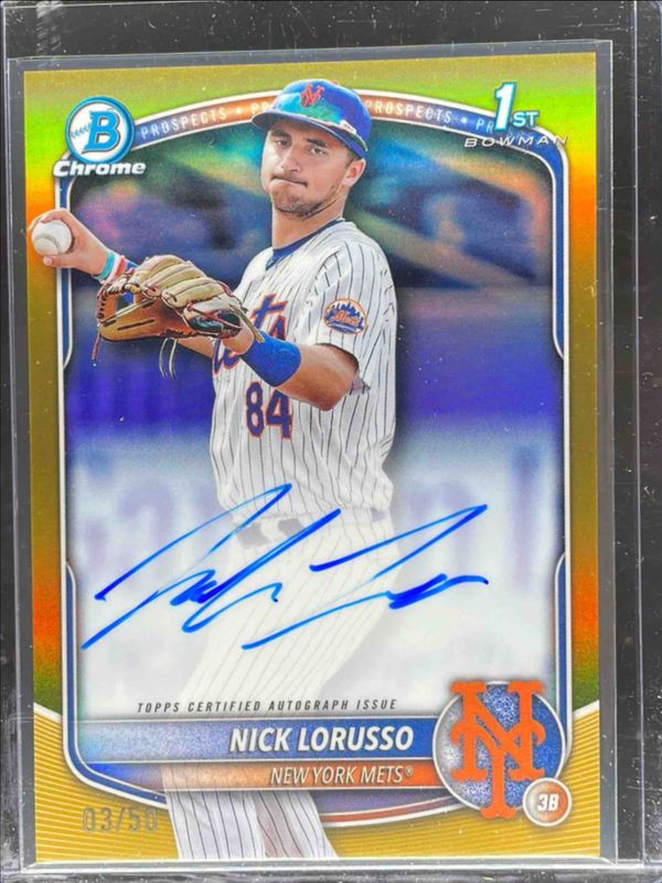 2025 Bowman Chrome Nick Lorusso Auto Gold Refractor 1st Prospect #/50 Mets