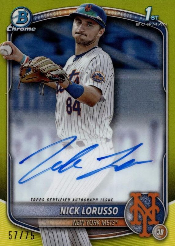 2025 Bowman Chrome Nick Lorusso Auto Yellow Refractor 1st #22/75 Mets